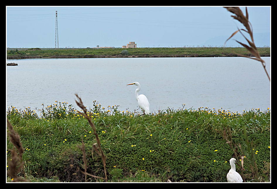 Incontro interessante. Per Mauro: quello in alto è un Airone bianco maggiore e quella in basso è un immaturo di Spatola, infatti ha il becco rosato e non nero
