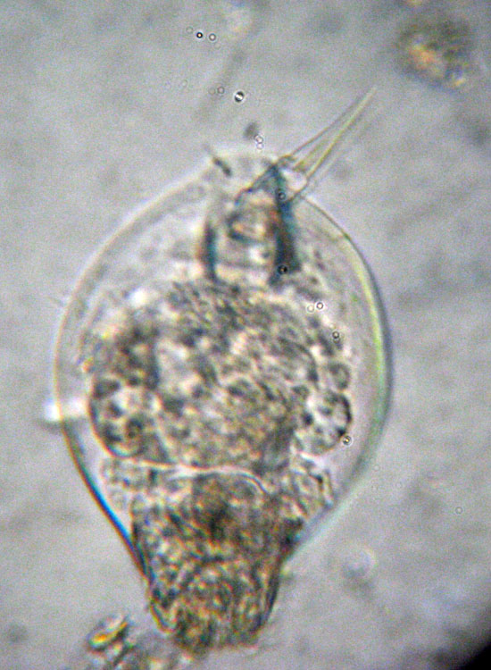 D) La posizione retratta di questo rotifero non aiuta certo a riconoscerlo: dalla vaschetta in giardino, 25-03-09.