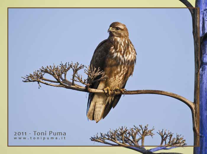 Grazie a tutti per i complimenti. In realtà, dove l'ho fotografata la Poiana è solita posarsi sulle infiorescenze di agave, da cui controlla i conigli sulla cui predazione si è specializzata. Ho chiesto lumi sulla stabilità della coppia perchè mi è capitato più volte di osservare la coppia in interazione anche ben al di fuori del perdodo riproduttivo. Ciao