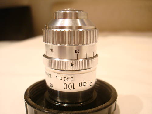 Se proprio non volete superare il valore 1 del n.a., conviene cercare un ottimo 40-60x /0,95. Limpidezza e incisione ci guadagnano moltissimo. Se poi è planapo ed ha un collare di correzione, ancora meglio. Ma i soggetti molto molto piccoli hanno bisogno di un ingrandimento un pò più generoso per non costringere l'occhio a lacrimare nel tentativo di scorgere dettagli al limite della risoluzione. Ecco che il 100x diviene un valido assistente per l'indispensabile 60x. |