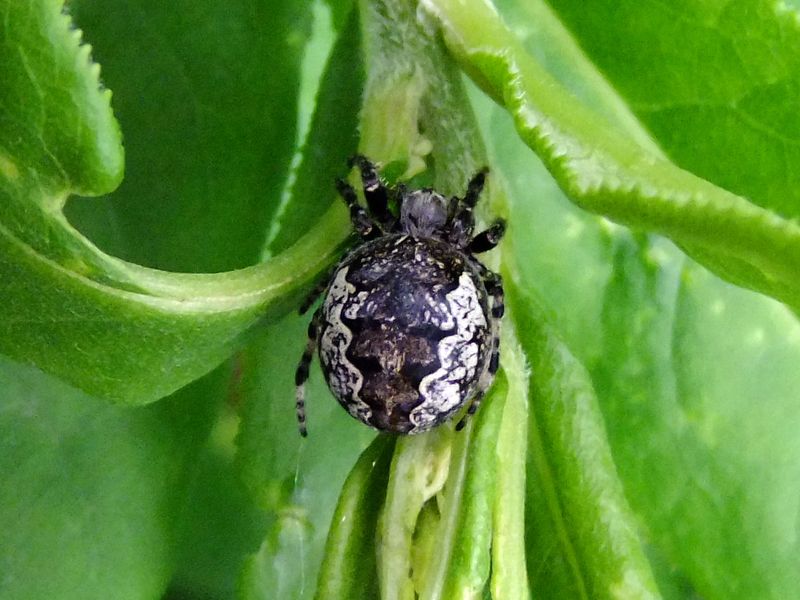 La Nuctenea non ce la vedo proprio, anche se il disegno può essere simile. Nuctenea ha una postura molto diversa, adatta per nascondersi nelle fessure strette degli alberi. Anche quando l'addome è particolarmente gonfio, si allarga lateralmente senza diventare tondeggiante sopra. Ci sono delle formazioni che sembrano le trapuntature dei materassi che gli impediscono di diventare turgido nel senso dello spessore ......