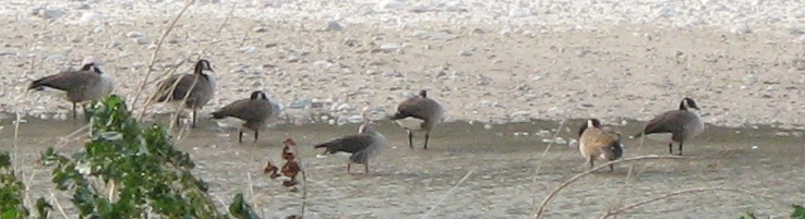 Fotografate oggi nel greto del Tagliamento a Gemona del Friuli (UD). Credo che siano sei Oche del Canada ed un'Oca selvatica. Ho visto giusto? E soprattutto: cosa ci fanno le Oche del Canada da queste parti? Da quanto si evince dalla Collins Bird Guide non si dovrebbero proprio incontrare alle nostre latitudini. Grazie. Ciao.