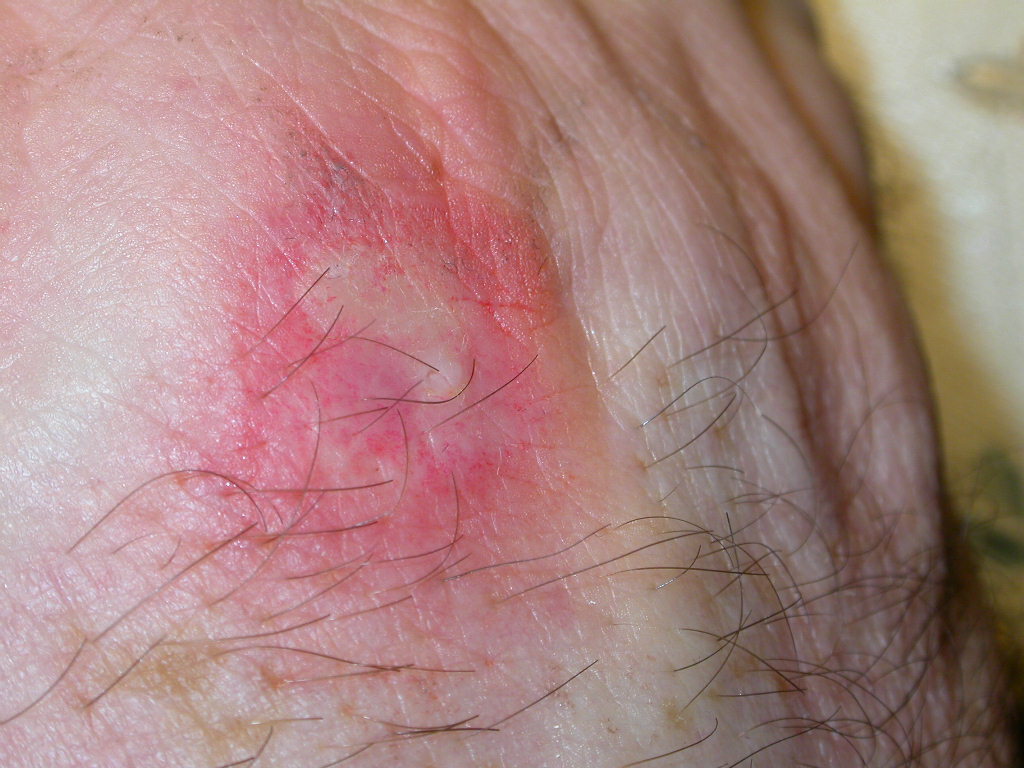 La zecca da sola non si stacca. A meno di un fatto traumatico. in quel caso al centro della lesione dovresti vedere i moncherini del rostro. E toglierli non dopo non è facile, occorre una incisione. La lesione invece sembra bollosa al centro, tipica da liberazione di istamina. la lesione è dolorosa? e' prurignosa? Se fosse prurignosa, la terapia si dovrebbe limitare a una crema cortisonica. Fosse doorosa, mi limiterei ad impacchi di acqua salata caldo/tiepida (diversi veleni di artropodi sono termolabili). visto che non mi pare ci siano interessamento linfonodale e linfangitico (stria rossa che corre verso il "centro" del corpo) , non userei antibiotici al buio. Diverso dovessi notare febbre, pus o linfangite verso il polso. Dovessi cercare un soggetto causale, penserei alla puntura di un esapode.