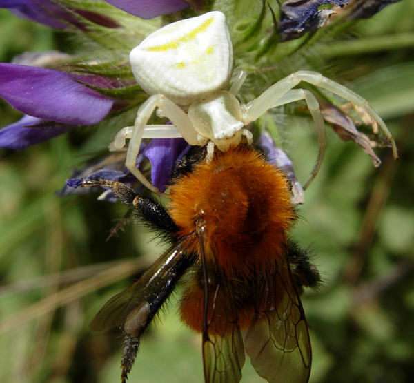 Ho notato il ragno per via della grossa preda che aveva catturato. Qualcuno di voi conosce il nome scientifico ? Io ho solo visto che viene chiamato Spider Flower.