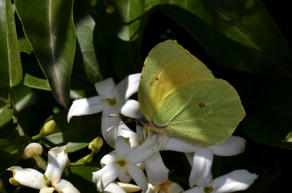Ho quasi la certezza che sia Gonepteryx cleopatra e credo sia un maschio avendo una estesa macchia arancione sulle ali anteriori. Il colore di fondo è però verdastro, più simile alla femmina.... Inoltre leggevo che ha solo uno sfarfallamento in primavera ed alcuni parziali in autunno, ciò mi fa pensare che svernando da adulto, è una delle farfalle più longeve o, solo la seconda generazione sverna? Ciao