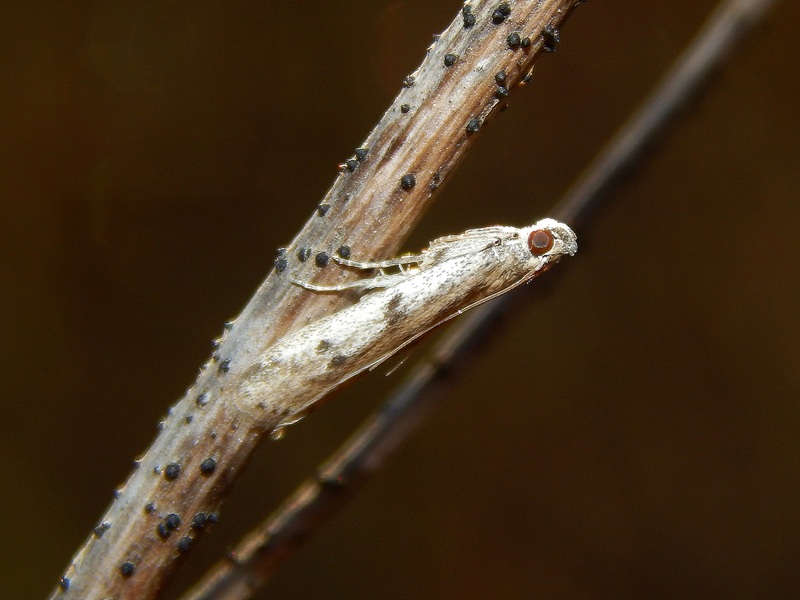 Spero qualcuno sia in grado di ID questo piccolo lepidottero mimetico , sembra in simbiosi col gambo secco della pianta su cui è appoggiato