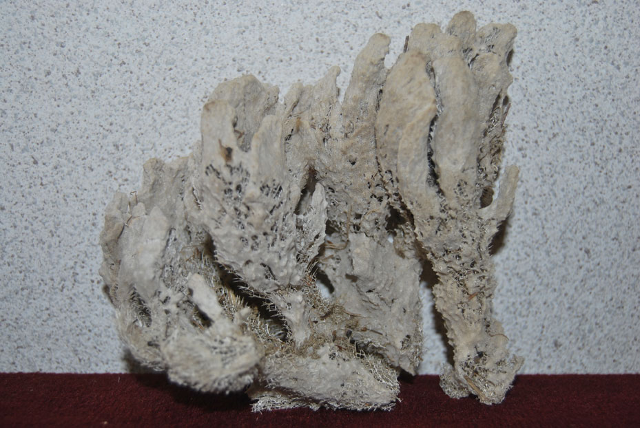 Questo scheletro di spugna è stato fotografato sulla battigia della spiaggia di Jesolo (VE); è alto circa cm. !5, all’interno è vuoto, ha una cosistenza leggera e fragile e al tatto tende a sgretolarsi. Io mi sono orientato verso un porifero dell’ordine degli Halichondrida, famiglia Axinellidae. Oltre non mi azzardo non avendo alcuna preparazione in merito. Ciao a tutti Leonida