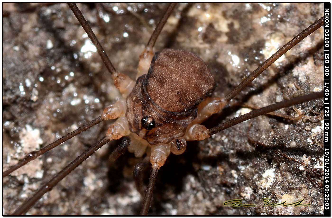 ATTENZIONE! Con tutti gli opilionidi è estremamente importante vedere l'oculario e la zona di fronte ad esso. Questo è vero in particolare per gli opilionidi a zampe corte nei quali il tridente è una caratteristica distintiva.
