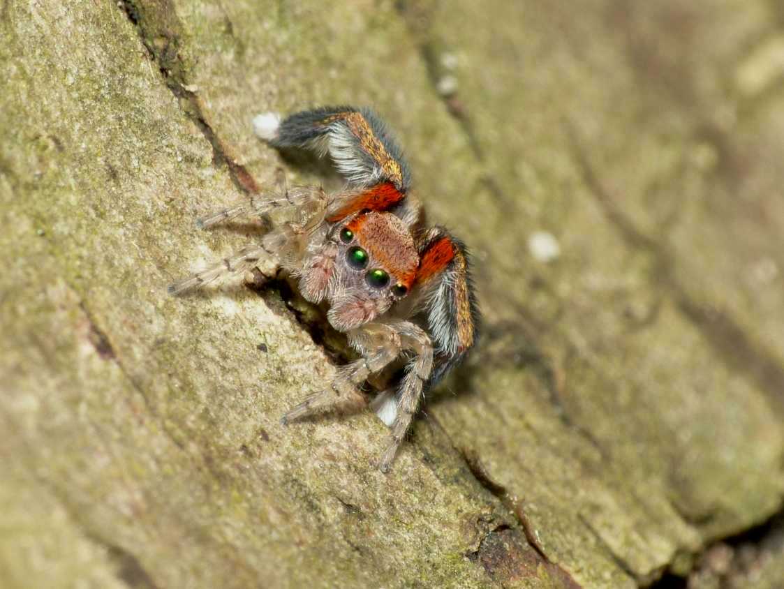 Maschio di Saitis barbipes scoperto da Carlo sotto un tronco tagliato.