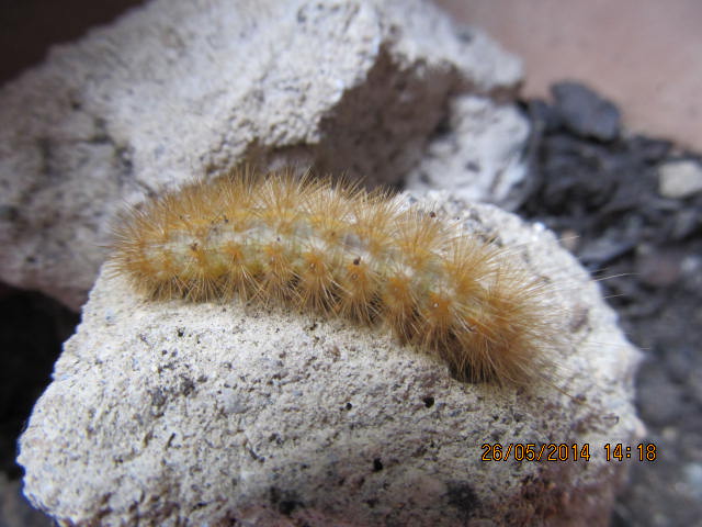 | Forse si. Tra tutte le foto che ho visto su internet quella che si avvicina di più è questa, ma credo che sia proprio lei. Purtroppo l'ho vista solamente mentre volava per cercare di uscire dal contenitore (mi sono accorta che era nata appunto perchè sentivo dei rumori forti provenienti da lì)e alla fine quando si è fermata ed è rimasta immobile. Ho visto solamente che le prime due zampe erano rossa e le ali marroni, nulla di più, poi l'ho liberata. Tuttavia le foto dei bruchi che ho visto su internet non assomigliano a questo che ho trovato io, sono di colore più scuro... |