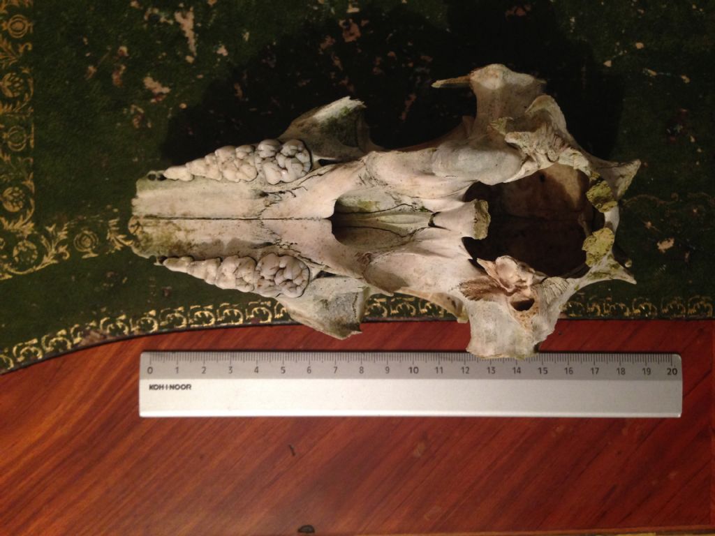 il mio reperto è identico a questo. Possiedo anche il cranio di sus scrofa domesticus giovane, e presenta parecchie differenze. Considerando anche il fatto che abbia personalmente ritrovato altri tre crani di cinghiale nella medesima zona (una cava abbandonata e inaccessibile ad animali domestici dall'esterno) non ho molti dubbi nell'attribuire il reperto ad un cinghiale. L'unica cosa che effettivamente non mi spiego è l'eruzione dell'ultimo molare... |