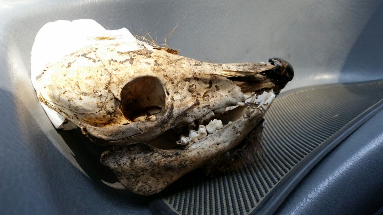 non mi intendo per niente di crani e provamdoci da sola non son riuscita a capire a che specie appartiene questo cranio. Lunghezza circa 20cm. Ritrovato all'isola del Elba, sul ciglio di una strada vicino a un bosco.