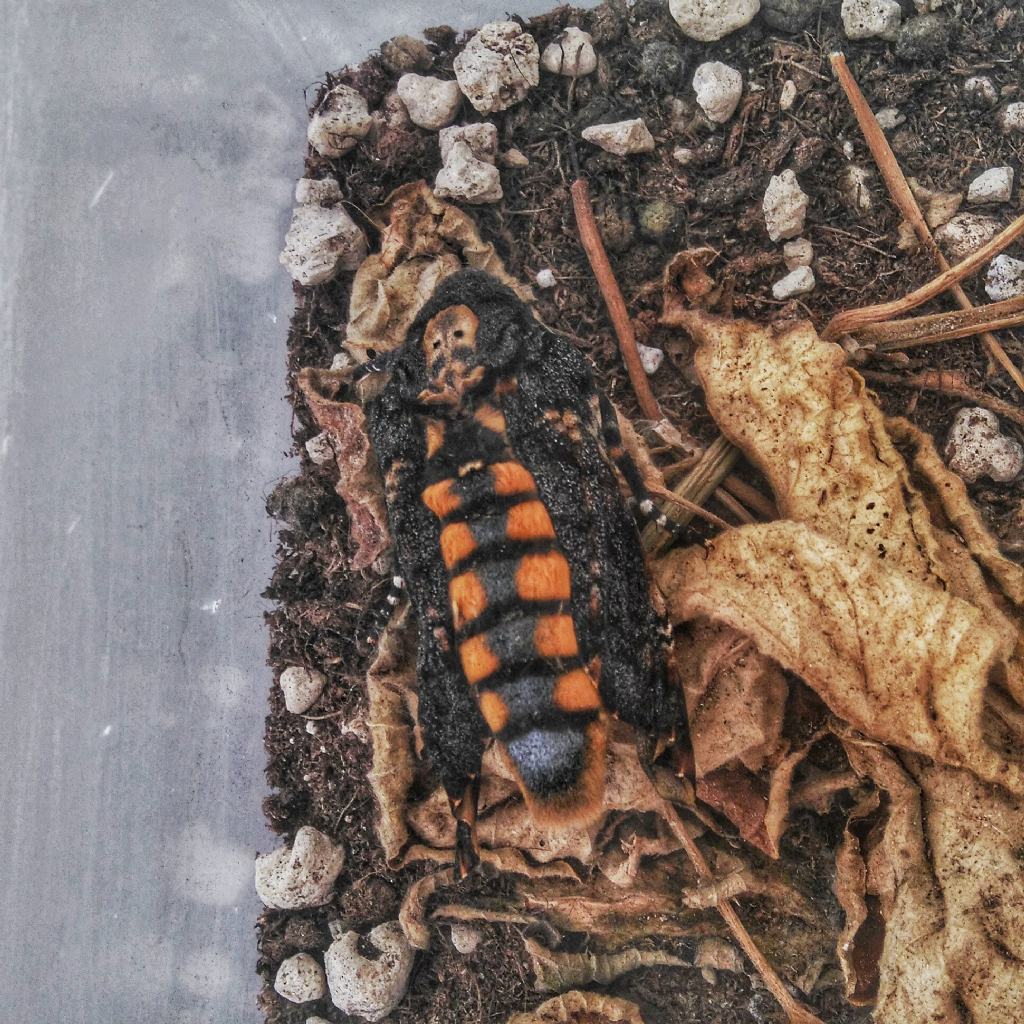 Ps: Allego due foto di sabato sera quando ancora "stava bene". Purtroppo non ho mai visto la crisalide perché abbiamo buttato via la terra dove c'era il bruco quindi non ho idea se fosse maschio o femmina per curiosità come posso distinguere il sesso nelle falene già adulte?  Immagine: