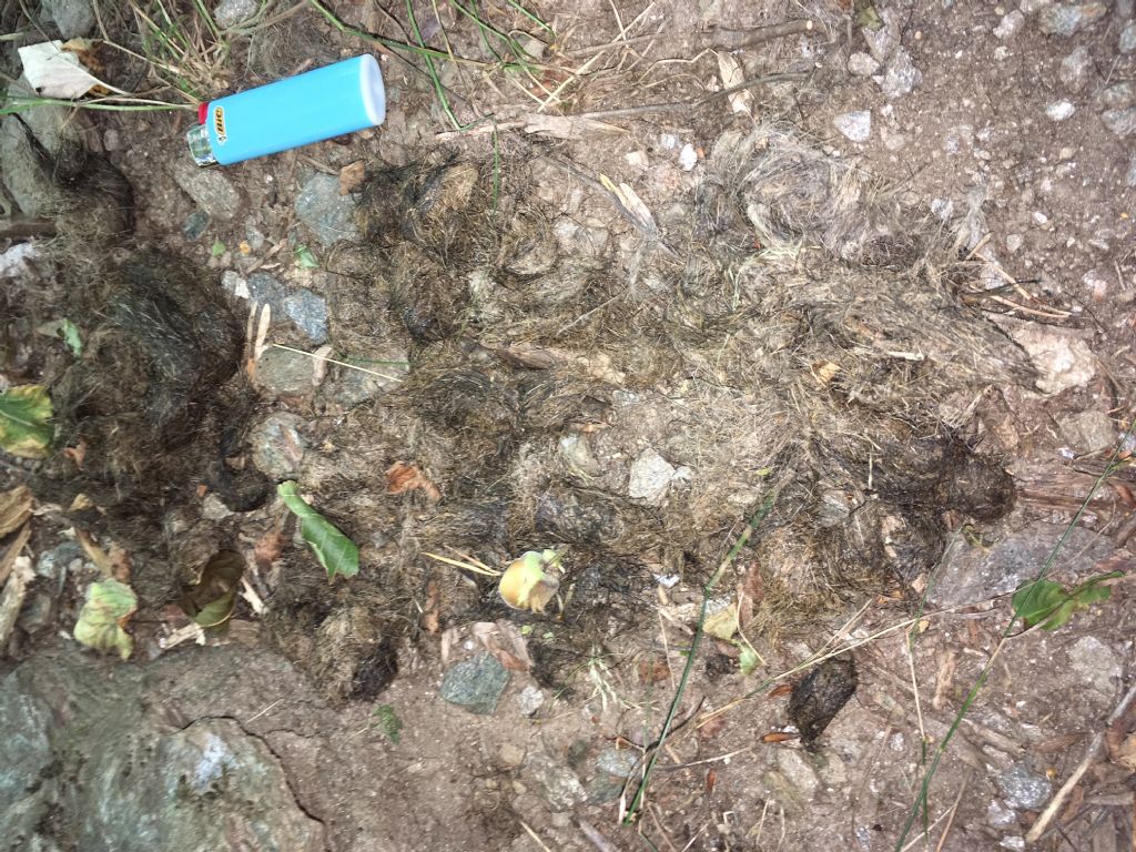 lo scorso sabato durante una delle mie escursioni ho notato un accumulo di fatte, ricchissime di peli e tra l'altro collocate a breve distanza da una carcassa di cervo.
