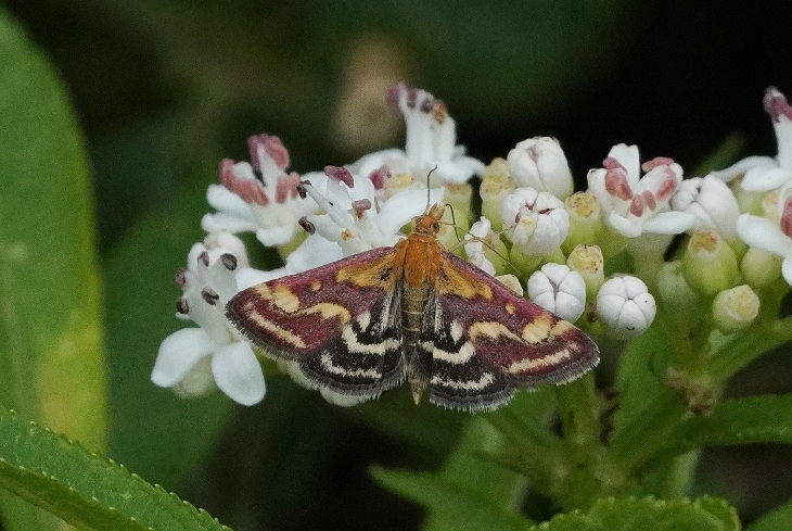 Anche secondo me si tratta di Pyrausta ostrinalis. Alcuni esemplari del sito leps.it fanno riferimento a L'Aquila (Abruzzo), quindi dovrebbe valere anche per l'Umbria. Vediamo se arrivano conferme più autorevoli.