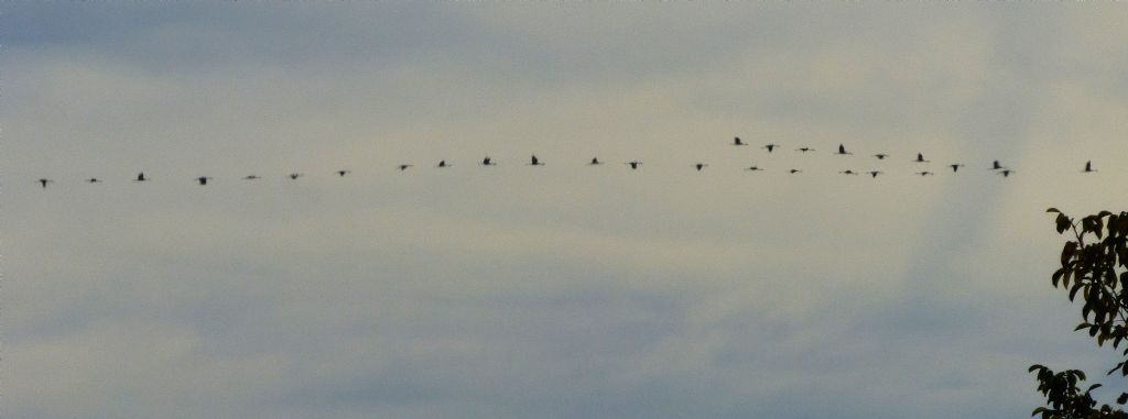 gruppetto di 29 gru in migrazione, "antipasto" della giornata di ieri con quasi 500 individui passati