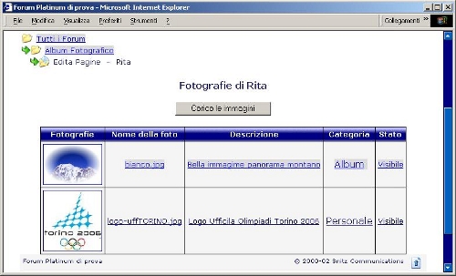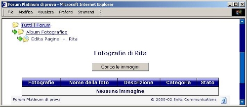 3) Per inserire delle foto (od in seguito modificare quelle già inserite) clicca su: Edita il tuo Album/Carica le immagini (Foto 1)
