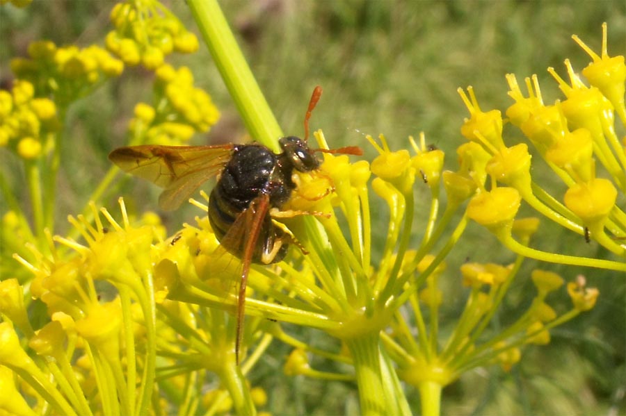 ...e soprattutto grazie mille per l'aiuto ! Questo imenottero ed il suo colore dorato sono davvero particolari! Su quale pianta si sviluppa la larva? E che distribuzione ha in Italia?