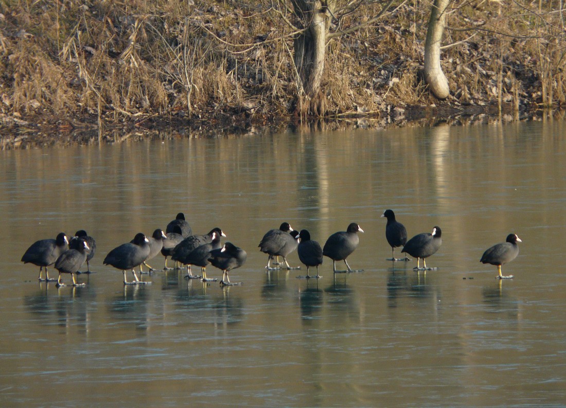 Già, gli uccelli acquatici sul ghiaccio… succede tutti gli inverni, qui in Lombardia, ma è sempre uno spettacolo!