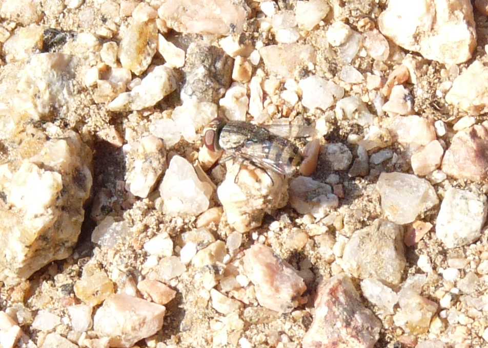 Se non ricoredo male, queswto piccolo dittero che si aggira con noncuranza dove ci sono tane nella sabbia dovrebbe essere quello che parassitizza le tane di Bembix, a sua volta cacciatore di ditteri.