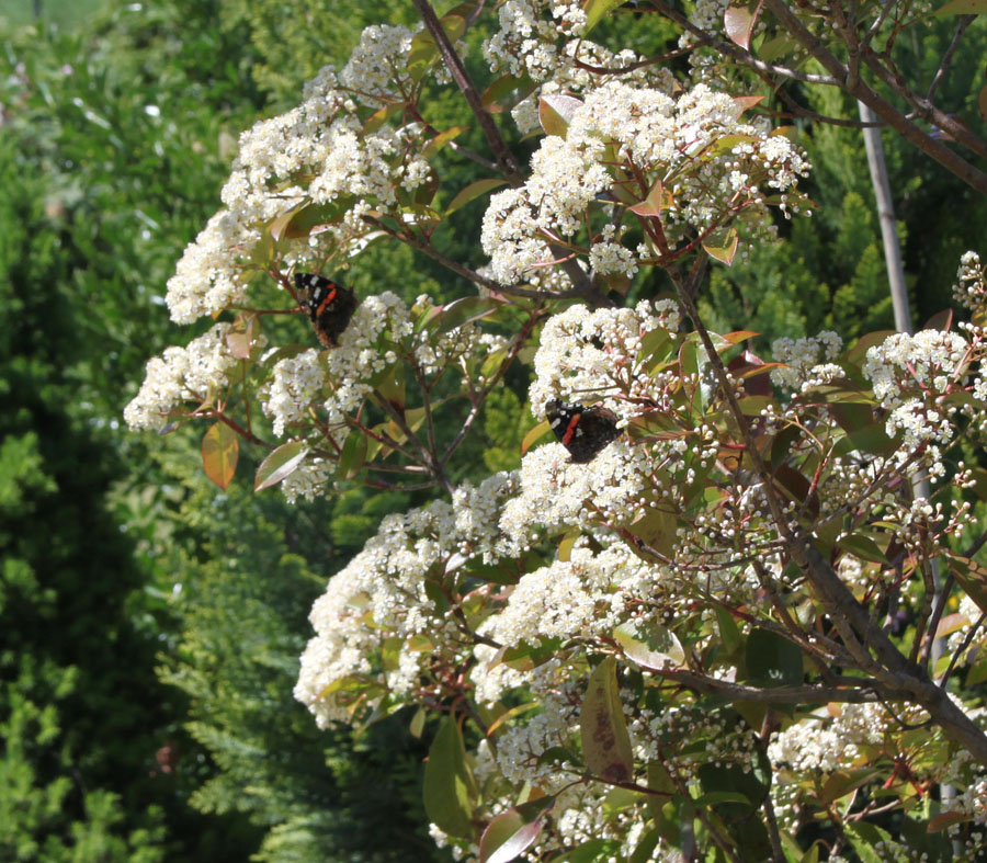 Vanesse Atalanta su arbusti di Fotinia