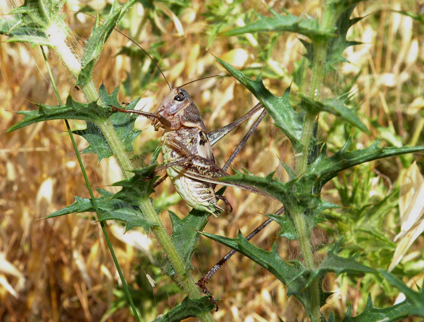 Ninfa di Decticus albifrons. Questo Tettigoniidae è uno degli ultimi a maturare. Intorno, le Tettigonia erano già adulte e cantavano.