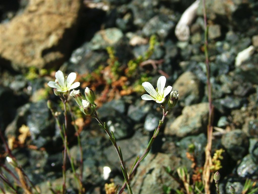 Minuartia laricifolia (L.) Schinz & Thell. subsp. ophiolitica Pignatti, entità ben poco differenziata per morfologia dalla subsp. laricifolia e di valore per me alquanto dubbio, però è anche la sola presente nel Levante Ligure (e in Appennino); la subsp. ophioliticaè una serpentinofila preferenziale (localmente sconfina su metagabbri), mentre la subsp. nominale sarebbe rigorosamente silicicola (e infatti nell'unica stazione nelle Alpi Liguri imperiesi vegeta su argilliti silicee, ricche in ossido di ferro) le restanti differenze morfologiche individuate da Pignatti sono tutte quantitative e assai deboli.