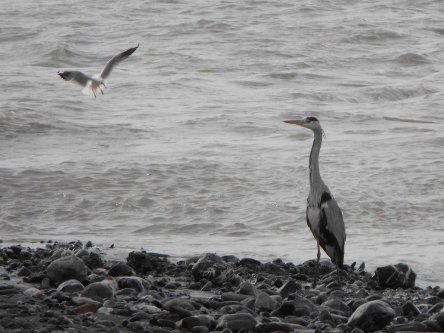 Airone cenerino e gabbiano comune