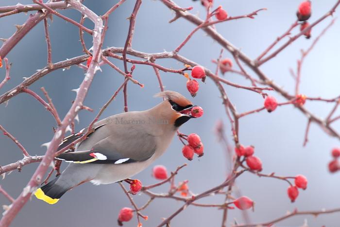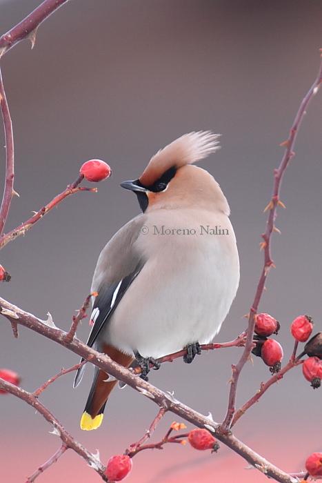 Venerdì sera ho ricevuto un msg della presenza di un gruppetto di beccufrusoni in provincia di Vicenza,ho deciso di tentare la fortuna e sabato mattina presto sono partito alla ricerca dei "folletti della taiga" sapendo benissimo del rischio di tornare a casa senza vederli...questa volta è andata bene in realtà ne ho visto solo uno,dopo aver controllato attentamente diverse località della zona,alle 11,su una pianta di rosa canina è apparso lui,in tutta la sua disarmante bellezza...purtroppo,all'arrivo di due cinciallegre sulla stessa pianta è volato via,giù per il fondovalle,sparito nel nulla....riprese nuovamente le ricerche,verso le 14,quando ormai ero intenzionato a riprendere la via di casa,è magicamente riapparso,questa volta concedendosi come un vero modello altri avvistamnti della gionata:n1 aquila r.,n1 civetta nana,n.4 ciuffolotti,n12 cesene,circa 150 gracchi alpini,n.2 corvi imp. e altri pennuti vari di stagione...e purtroppo un bellissimo allocco(forma rossa)investito a lato strada... ciao Moreno