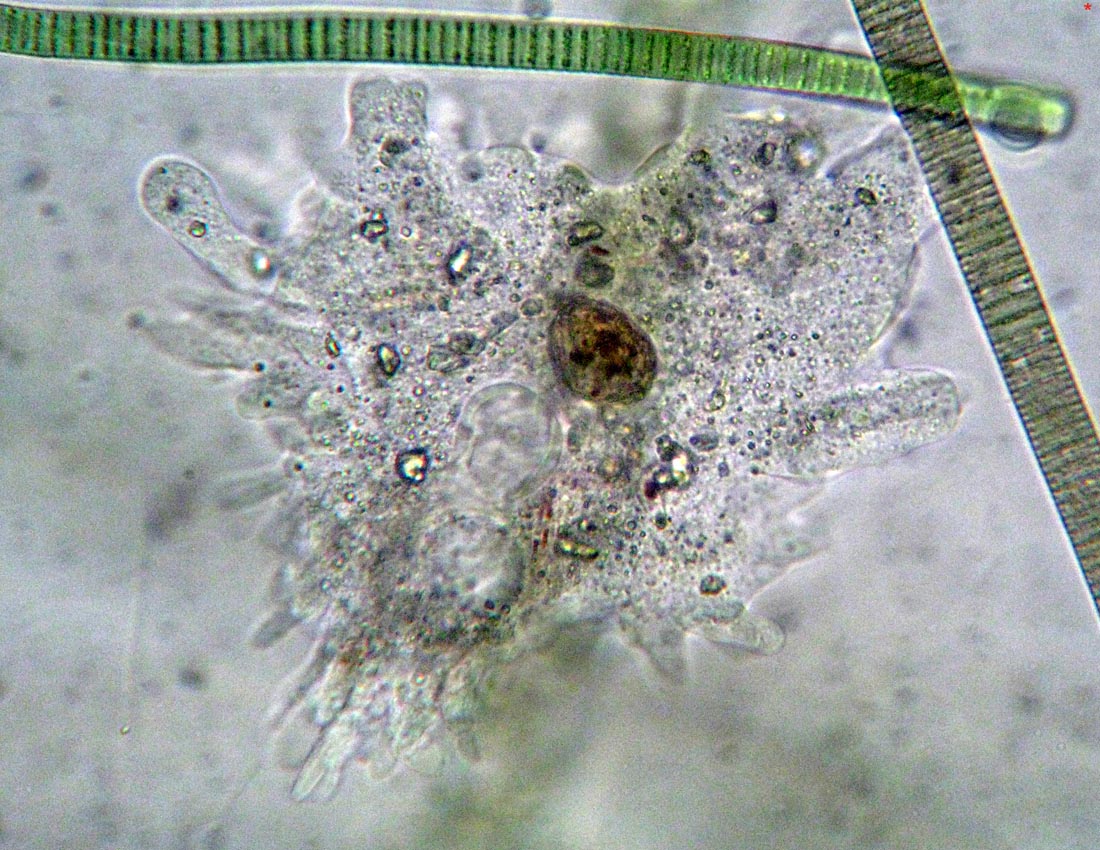 1) Propongo Polychaos annulatum, sulla base dell'articolo "An illustrated list of basic morphotypes of Gymnamoebia (Rhizopoda, Lobosea)" di AV Smimov e AV Goodkov, su Protistology 1,20-29 April 1999 (ma reperibile gratis su internet) e della chiave identificativa del sito Microworld. (Link ).