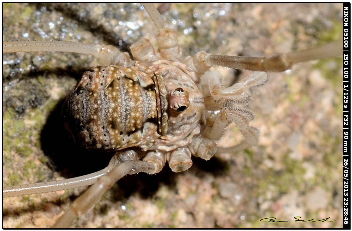 ATTENZIONE! Con tutti gli opilionidi è estremamente importante vedere l'oculario e la zona di fronte ad esso. Questo è vero in particolare per gli opilionidi a zampe corte nei quali il tridente è una caratteristica distintiva.