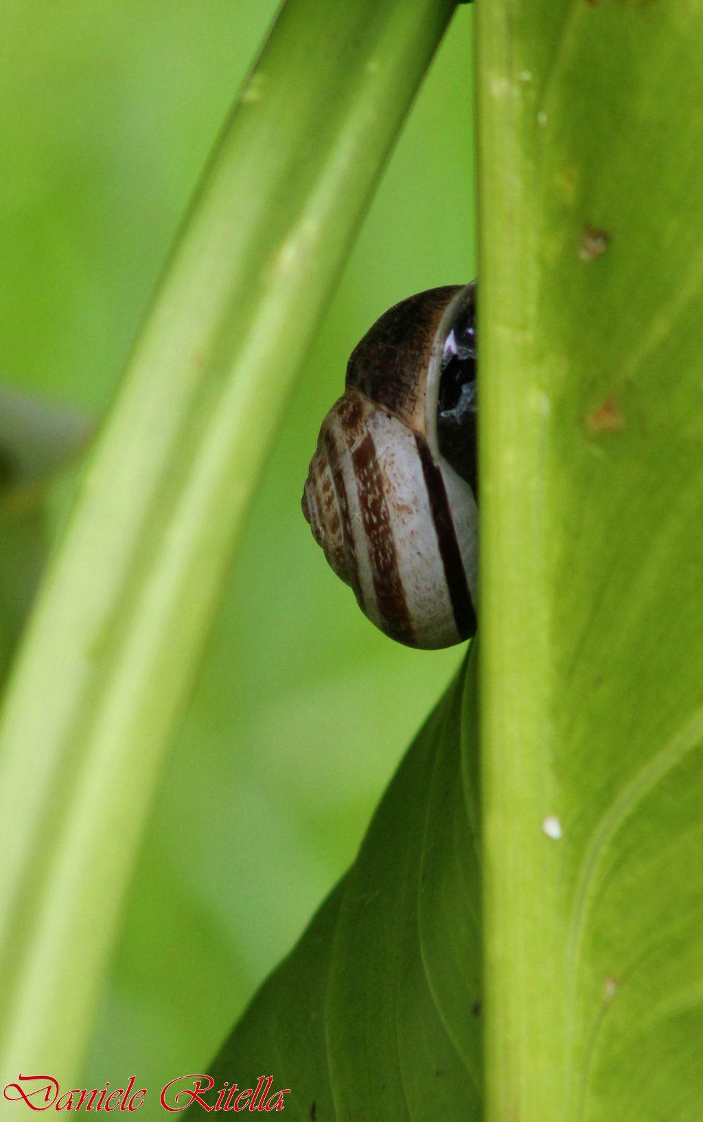 E' una Eobania vermiculata che fa l'occhiolino dietro una pianta.