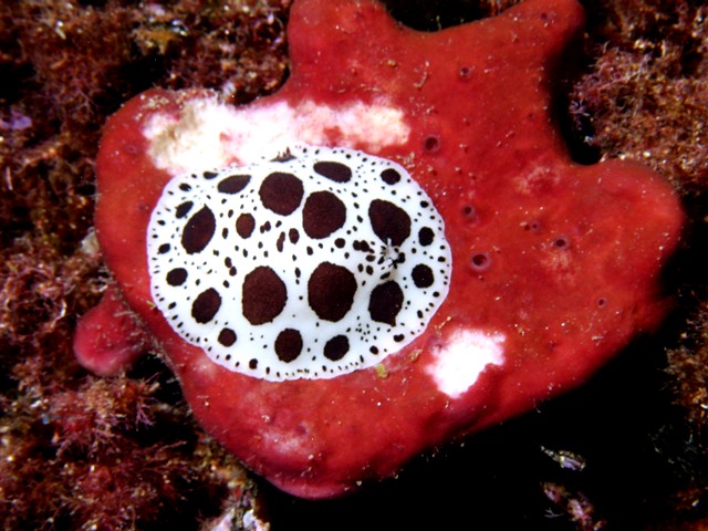 Ciao e grazie per l'apprezzamento, come dice Squalo, questi animali ,proprio a causa della loro "pezzatura" che le fà assomigliare a dei bovini di razza Olandese, vengono volgarmente chiamate : "vacchette di mare", personalmente, a meno di quelle specie note da centinaia d'anni e per le quali esiste un affermato nome comune, non amo questi neologismi e parallelismi, come "margherita di mare" per il Parazoanthus axinellae ed altre amenità, lo trovo riduttivo ed irriguardoso in un certo qual modo per gli organismi marini, un mondo, il mare, da dove la vita sulla terra proviene, casomai dovrebbero essere le mucche a chiamarsi "Peltodoris di terra!" Il nome greco/latino ha sempre un significato strettamente rappresentativo della specie. A volte per ignoranza(in senso lato) degli scienziati si assiste a vere e proprie traslitterazioni anche dei nomi scientifici, un esempio è il genere"Panuliris", evidente erronea trascrizione di "Palinurus", con la differenza che il primo non significa nulla, per cui nuove specie di aragoste hanno creato (non loro, gli scienziati ignorantoni!)un nuovo genere internazionalmente riconosciuto. Dopo questa breve digressione, torniamo al nostro Peltodoris atromaculato Bergh: è un animale dal corpo appiattito, di colore più o meno bianco latte con pezzature bruno/nere molto variabili, in quanto ai due estremi si possono rinvenire esemplari completamente bianchi o completamente scuri, hanno 6/9 branchie i rinofori e le branchie a ciuffo sono sempre bianche, si riproduce ad ottobre e vive dove è presente la spugna Petrosia ficiformis di cui si nutre. Infatti, eccetto l'ultima foto, gli animali sono stati rinvenuti nelle acque di Punta Galera di Caprera dove la Petrosia ficiformis è molto abbondante. A volte si possono trovare in cavità tenebrose, come quella da me fotografata su spugna Crambe crambe in località Secca di Spargi o Washington nell'Arcipelago di La Maddalena ad una profondità di circa 40 m. Invio un'altra foto di P.a.con mcchie molto diffuse, saluti e grazie per l'attenzione, Protesilao