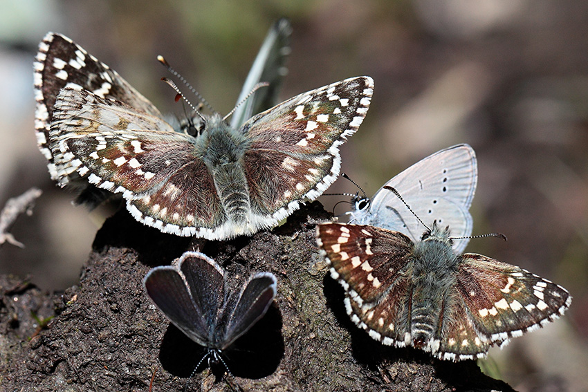 i licenidi : Cupido minimus ad ali aperte e Cyaniris semiargus. Dei tre Pyrgus, azzarderei P.carthami al centro e anche in basso (anche se sembrerebbe più piccolo dell'altro...)