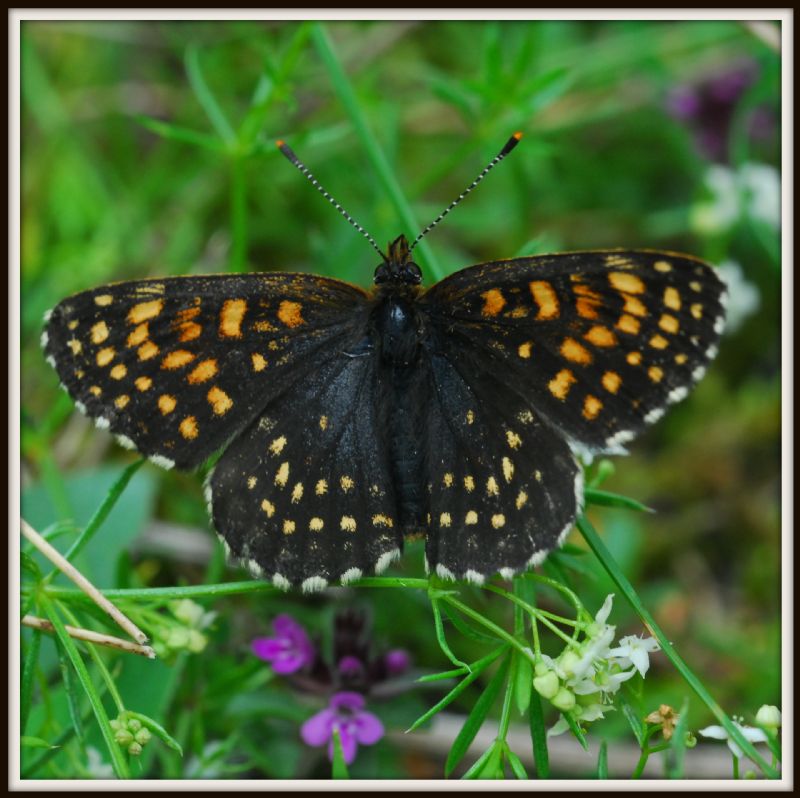 e poi Syntomis phegea, un maschio solitario e forse tardivo di Anthocharis cardamines, Zygaena purpuralis.