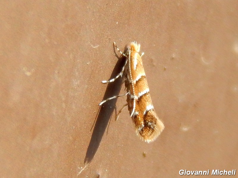 Infatti è proprio sul muro di casa esterno , proprio sotto ad un ippocastano che ho trovato decine di questi piccoli microlepidotteri che ad una vista non attenta potevano sembrare moscerini in volo.