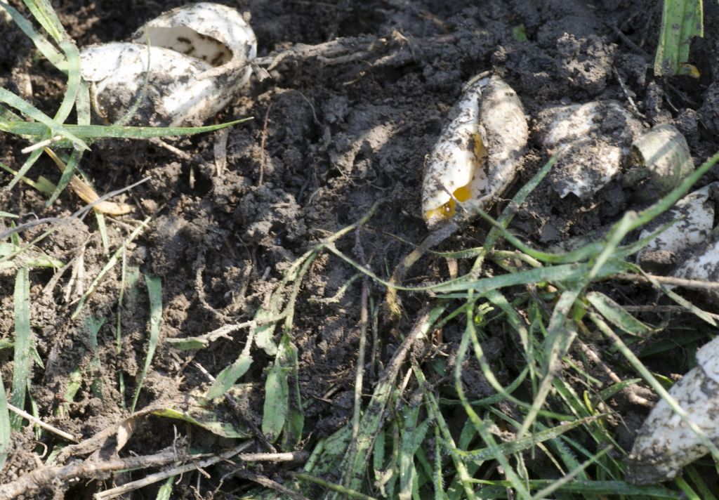 camminando sulle rive del Bisenzio ho visto queste uova, erano accanto a una buca come se un animale avesse scavato per prenderle e ne avesse mangiato il tuorlo. Ma nelle vicinanze del fiume non conosco animali che scavino buche per deporre le uova, a quale animale potrebbero appartenere? Erano bianche piu' piccole di un uovo di pollo, circa meta' della grandezza dell'uovo di gallina o poco piu'(le foto non sono eccezionali)