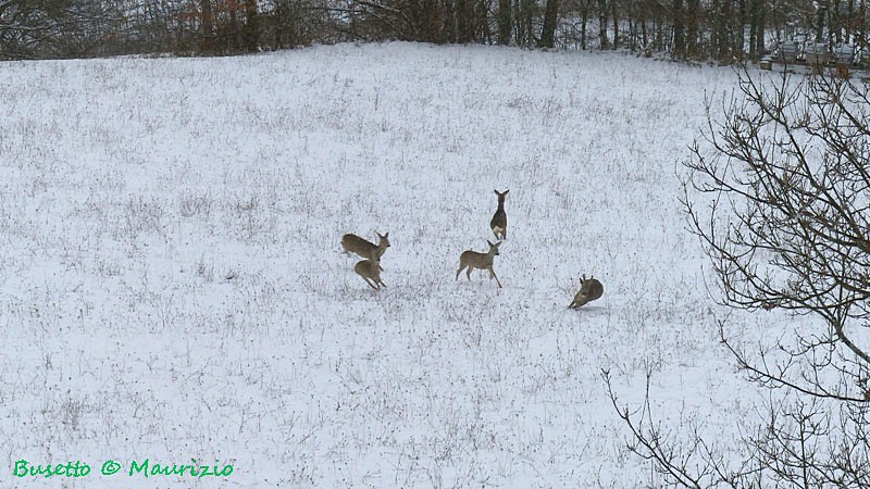 Tre febbraio,nevica... sono le 16,45,franca mi chiama:Ci sono i caprioli nel prato..