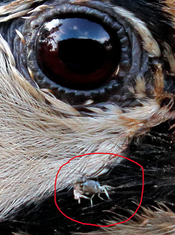 Salve a tutti, in questo periodo mi sto dedicando, tra le varie foto che gli faccio, ai ritratti (distanza un metro) e ieri, mi sono accorto di una bestiaccia sul mio amico! Vi faccio vedere un crop... cosa potrebbe essere? Io penso un acaro o una zecchetta. Mi piacerebbe aiutarlo, ma temo non sia possibile.
