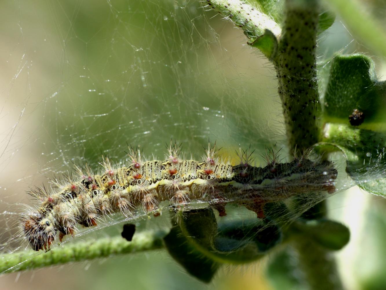 Ciao Luigi, si tratta di Vanessa cardui, Nymphalidae . In questo momento ne ho uno nel box che si sta trasformando in crisalide, domattina al suo posto troverò appunto una bella pupa dorata .