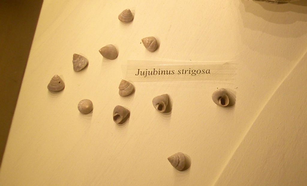 Ecco, nella vetrina del Pliocene, con provenienza "Toscana", Jujubinus strigosa.