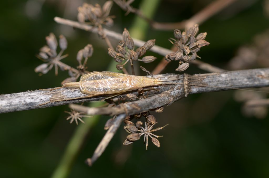 Si tratta di un Oechantus, probabilmente O. pelluncens. Un grillo arbusticolo. Ma siamo fuori dalla mia competenza.