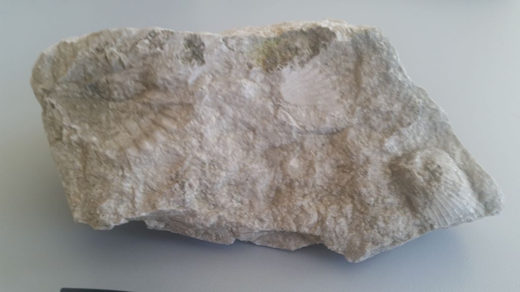 Provenienza Coreno, prov. di Frosinone, questa roccia è un calcare di colore biancastro e presenta l'impronta di tre gusci di conchiglie. Che tipo di roccia è? È le conchiglie che fossili sono?
