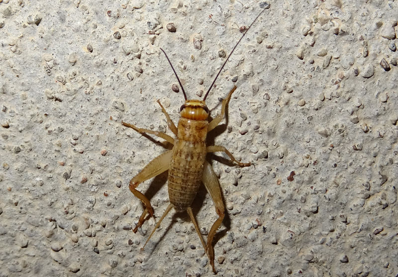 La colorazione poco maculata, in particolare dei metafemori mi fa preferire (ninfa) Acheta domestica rispetto a Eumodicogryllus bordigalensis.