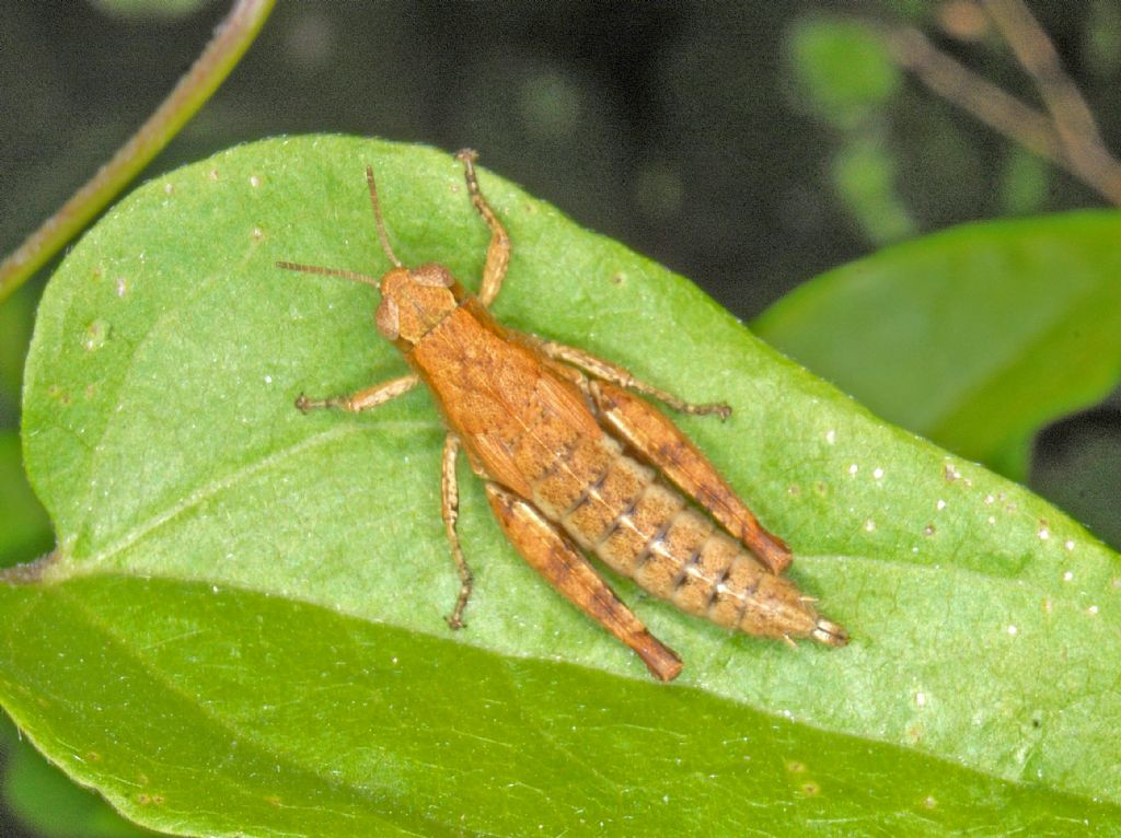 Si tratta di una femmina adulta di Pezotettix giornae in una bella forma di colore aranciata.