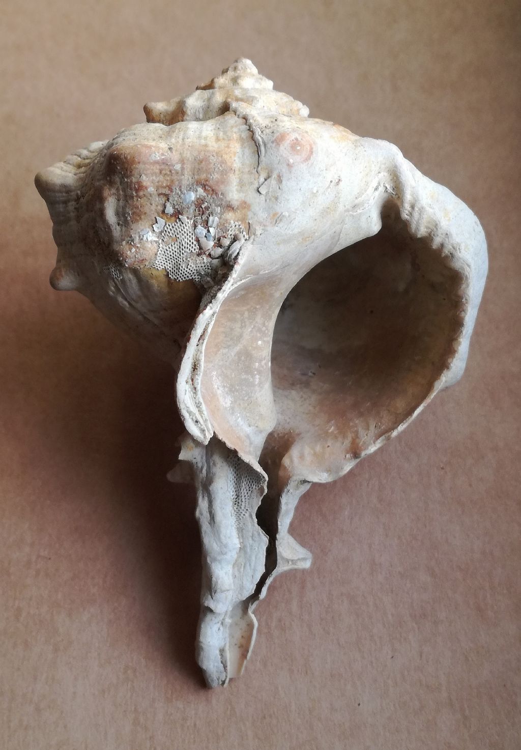 Massiccio esemplare (98 mm di lunghezza) di Bolinus brandaris torularius (Lamarck) da argille dello Zancleano nell'area di Lugagnano Val d'Arda (PC).