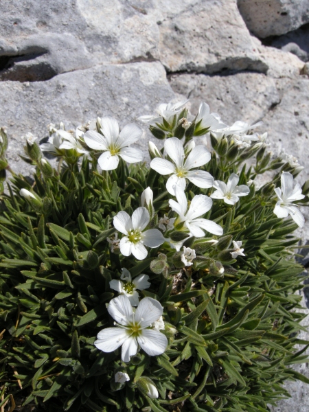 Conosco il Cerastium thomasii e il C. tomentosum. La parte fogliare nelle tue foto fanno pensare al primo ma i fiori del C. thomasi ed anche quelli del C. Tomentosum hanno più petali.