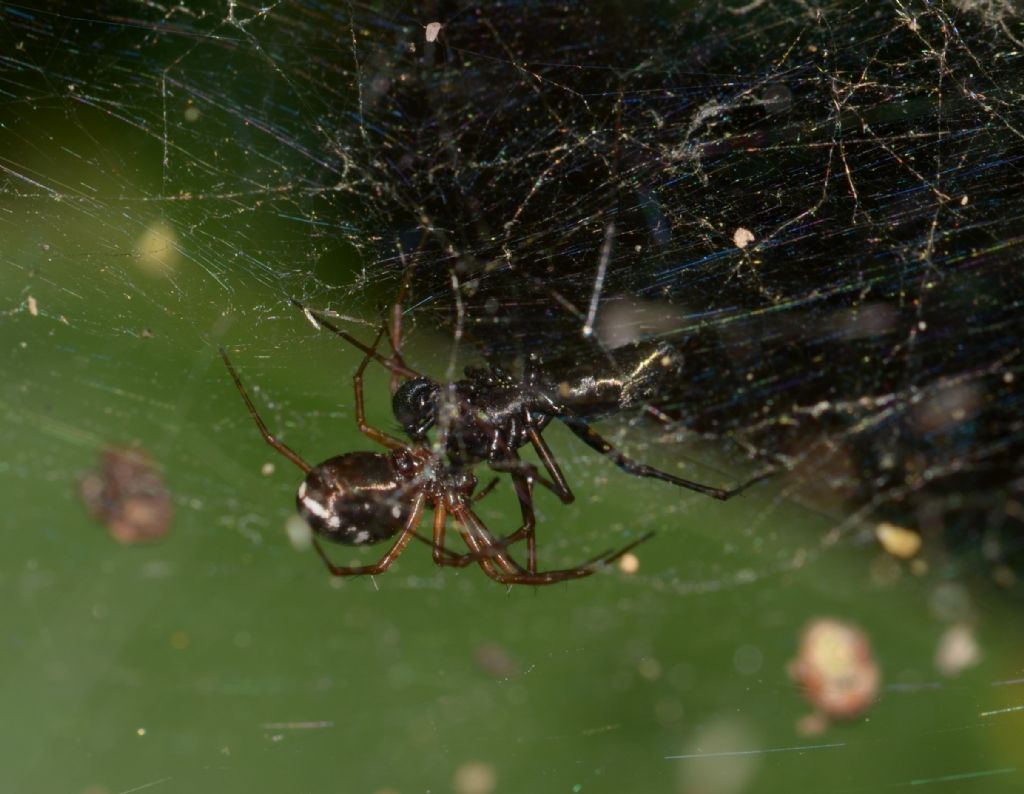 Salve, ho ritrovato questi vecchi scatti senza nome, se le immagini lo permettono chiedo se i soggetti fotografati nel mio piccolo giardino in data 20.05.2018 possano essere Linyphia hortensis nel momento della copula. Purtroppo la posizione della tela non mi permise altre angolazioni per scattare foto migliori.
