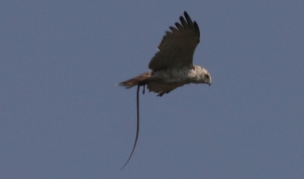 Dunque, ti dico la mia.. nelle prime foto hai beccato un immaturo penso 2cy, cioè ad agosto, significa nato l'anno prima, lo vedi perchè ha la testa chiara (bianca) e nell'ultimo scatto, intravedo il gozzo pieno. All'altezza del collo, noto come una "palla" che sicuramente è il residuo del serpente, l'altra parte sarà già scesa verso lo stomaco. Se non lo hai seguito sempre da potermi dire che è il solito individuo, quello posato è un secondo Biancone, lo vedi perchè la testa è marrone, questo per me è adulto o per lo meno un immaturo almeno sui 4/5 anni, ci sarebbe da vedere quanto è barrato il sottoala ed il corpo, quindi in altra posizione in volo. Se noti la coda, mancano delle penne, mentre nelle prime foto, la coda pare intera. Spero di essere stato abbastanza chiaro, altrimenti scrivi pure se hai indecisioni o altre cose da chiarire.  |