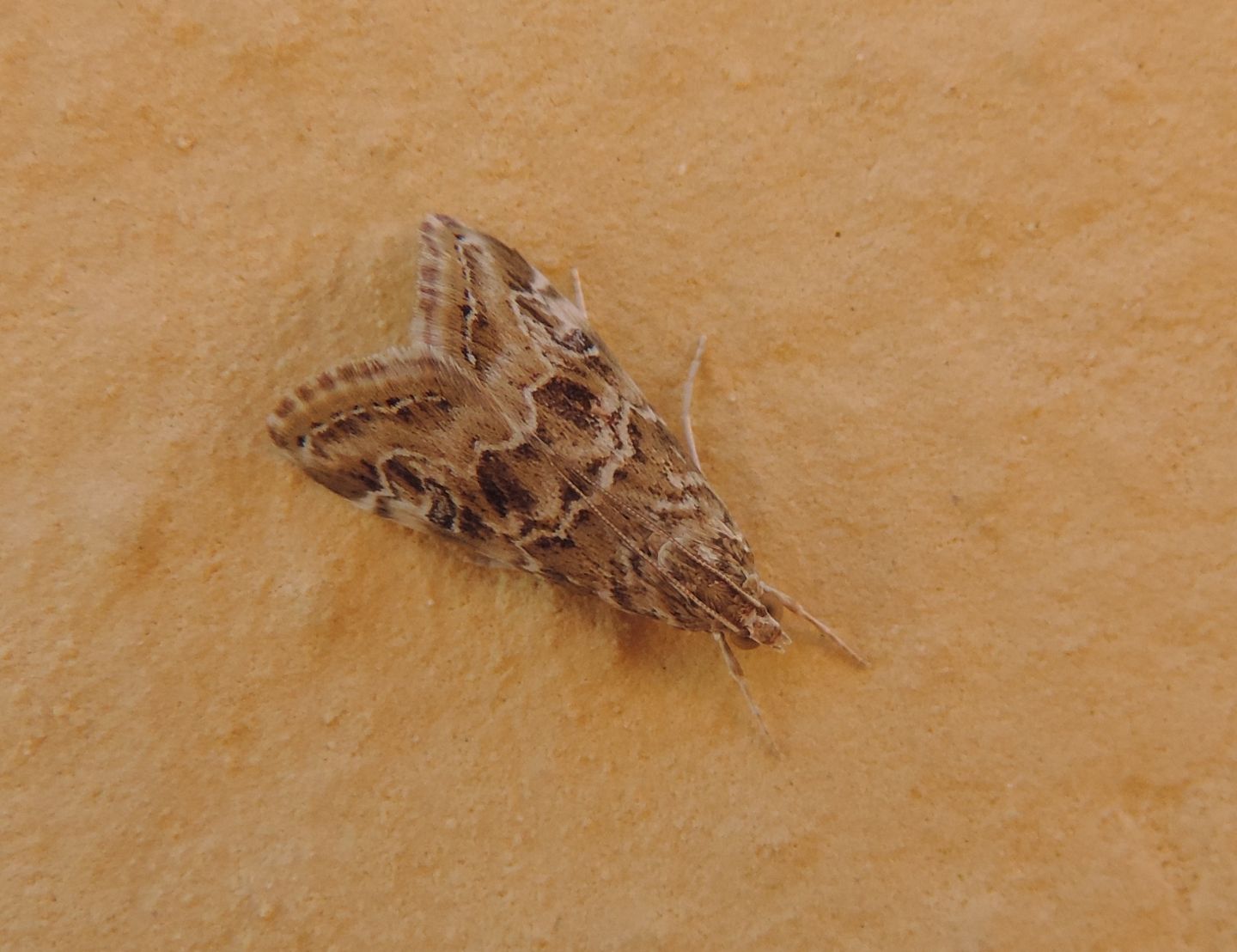Fotografate su un muretto a secco e su una casa nella campagna di Linosa (AG), il 28 ottobre 2019, in una giornata piovosa, saranno identificabili? Forse un Pyralidae come Hellula undalis?
